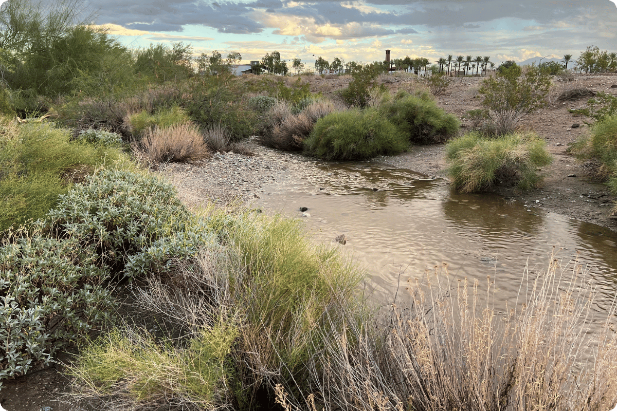 Scenes from my evening walk… A sudden gurgling stream in the desert.